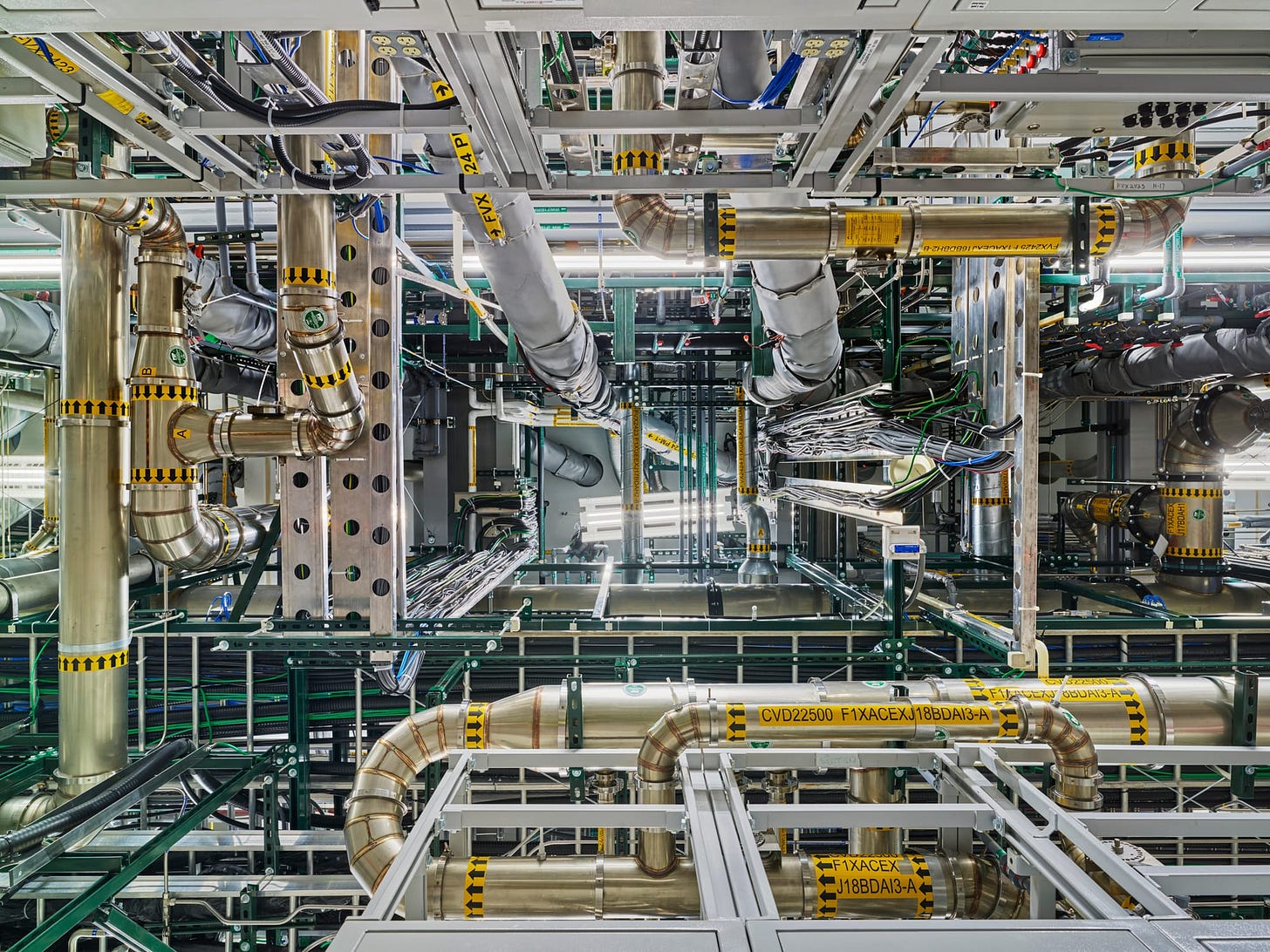 (A "bottom up" view of the sub-fabrication floor at Global Foundries, Malta, New York. Image courtesy Christopher Payne.)3
